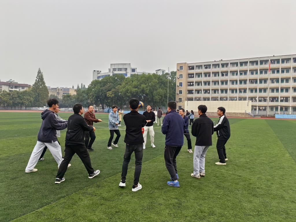 本次趣味运动会为团队合作,共设三个项目,分别是毛毛虫、龟兔赛跑和击鼓颠球。赛前,同学们跨着毛毛虫跃跃欲试。随着一声令下,师生们边提着毛毛虫,边喊着“左、右,左、右”的口号使劲向前冲。在龟兔赛跑环节,男同学奋力奔跑,女同学坐在中间默契配合。击鼓颠球环节,大家全神贯注,及时调整力量和牵绳的角度,一边默契颠球,一边大声喊出颠球个数,增加士气。整场比赛,老师和同学们积极参与,欢呼声不断,欢乐声不停。