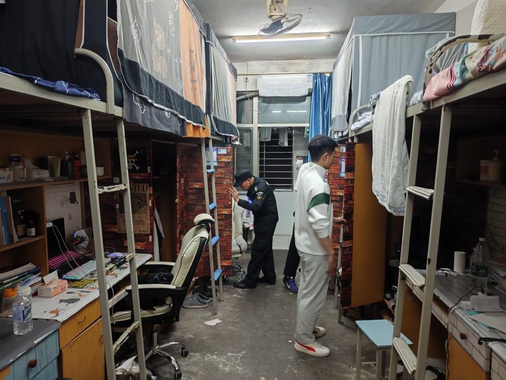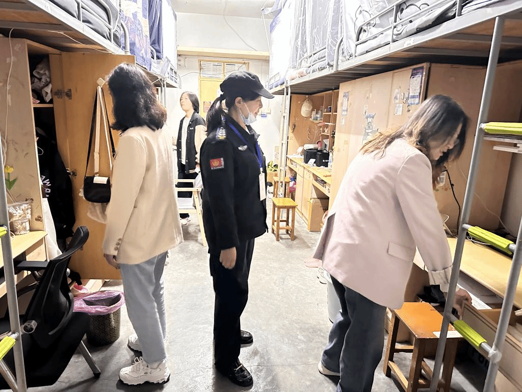 李襄静及各年级班主任、辅导员对学生宿舍卫生状况、违规电器等安全进行认真细致的检查。同时与同学们进行了深入交流,了解他们近期学习、生活、工作第方面情况。叮嘱同学们注意人身财产安全,谨防电信诈骗,防范传销,提高安全意识。针对检查中发现的桌面脏乱、杂物堆积等宿舍内务问题,要求学生及时整改。