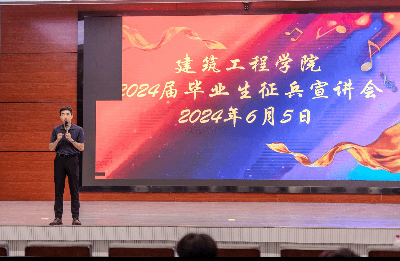 在学院举办的征兵动员大会上,专职辅导员魏先骏强调了国防建设对于国家安全和发展的重要性,并呼吁同学们珍惜机会,积极报名参军。他表示,学院的学子们不仅要在专业领域展现才华,更要有勇于担当、保家卫国的精神。